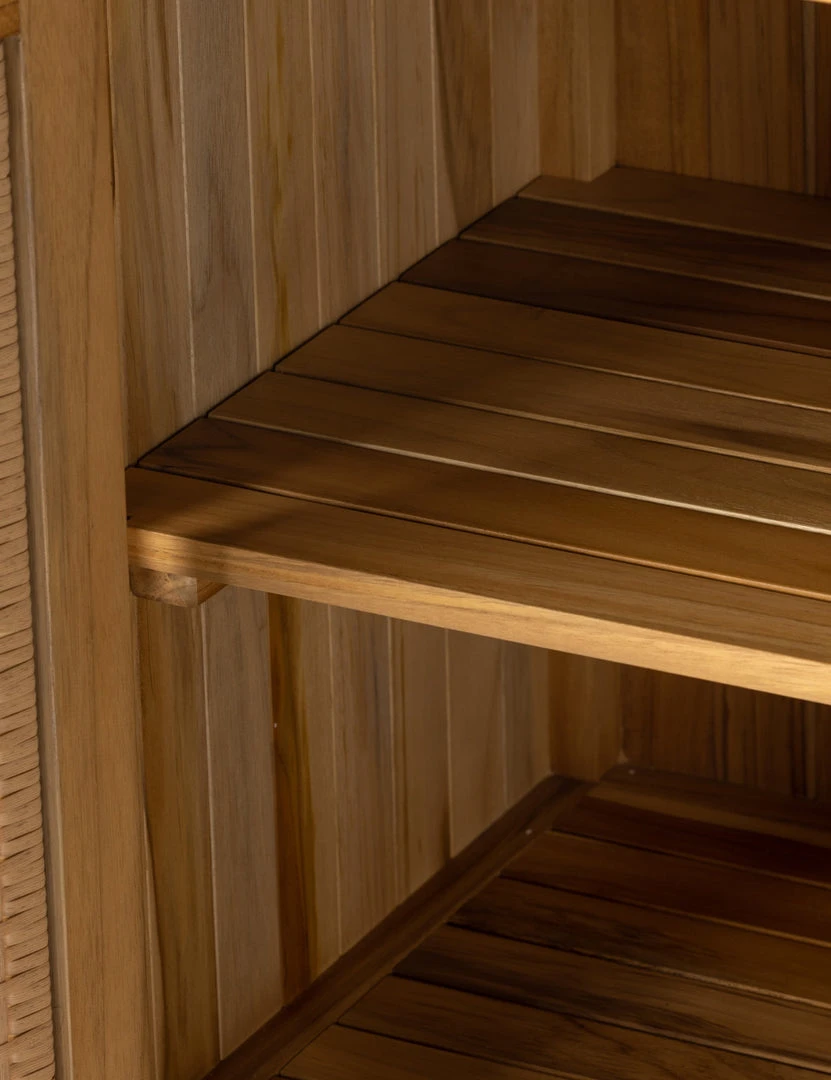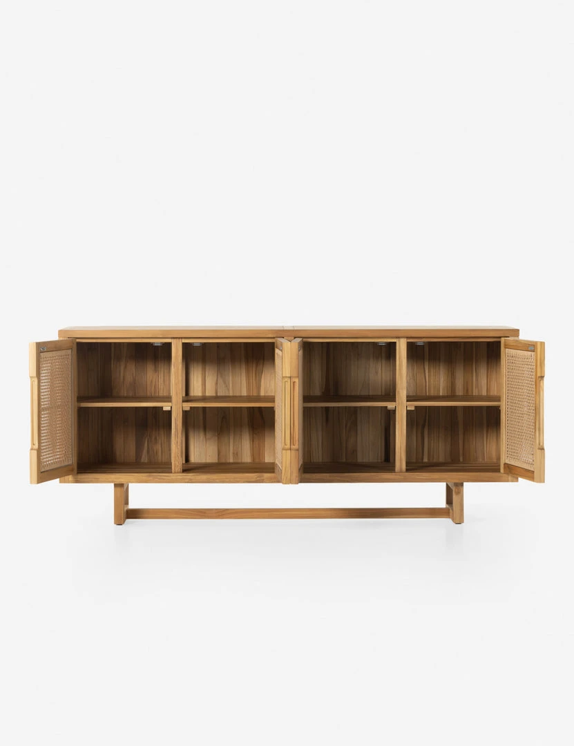 Inspire a space that feels elevated yet timelessly casual with this versatile indoor/outdoor collection. A solid teak frame with all-weather wicker doors offers the Anson sideboard buffet a breezy charm. Create unique storage appeal in a transitional space or outdoor lounge with this sideboard cabinet.