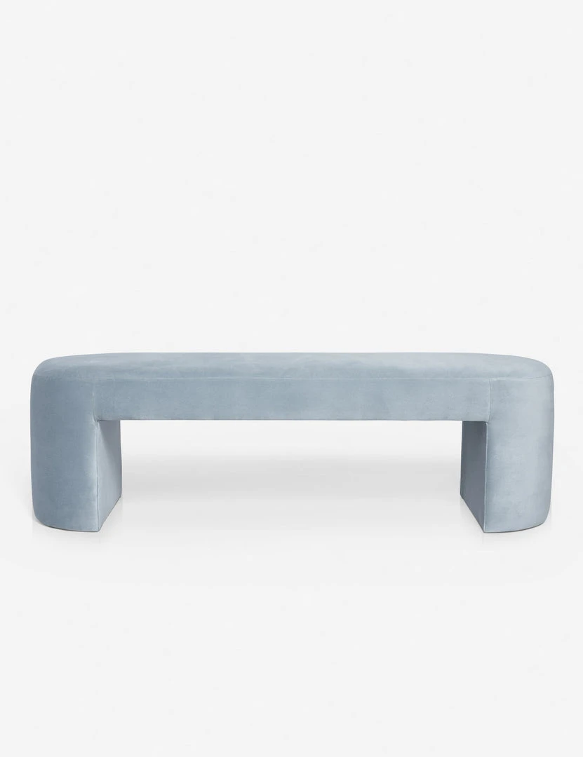 Freshen up a refined look with this soft-hued bench. A foam-padded frame is wrapped in smooth, dove gray velvet upholstery to complement the gentle lines of its clean design. Style this bench in your bedroom or entryway for a luxe accent and an easy place to land.
