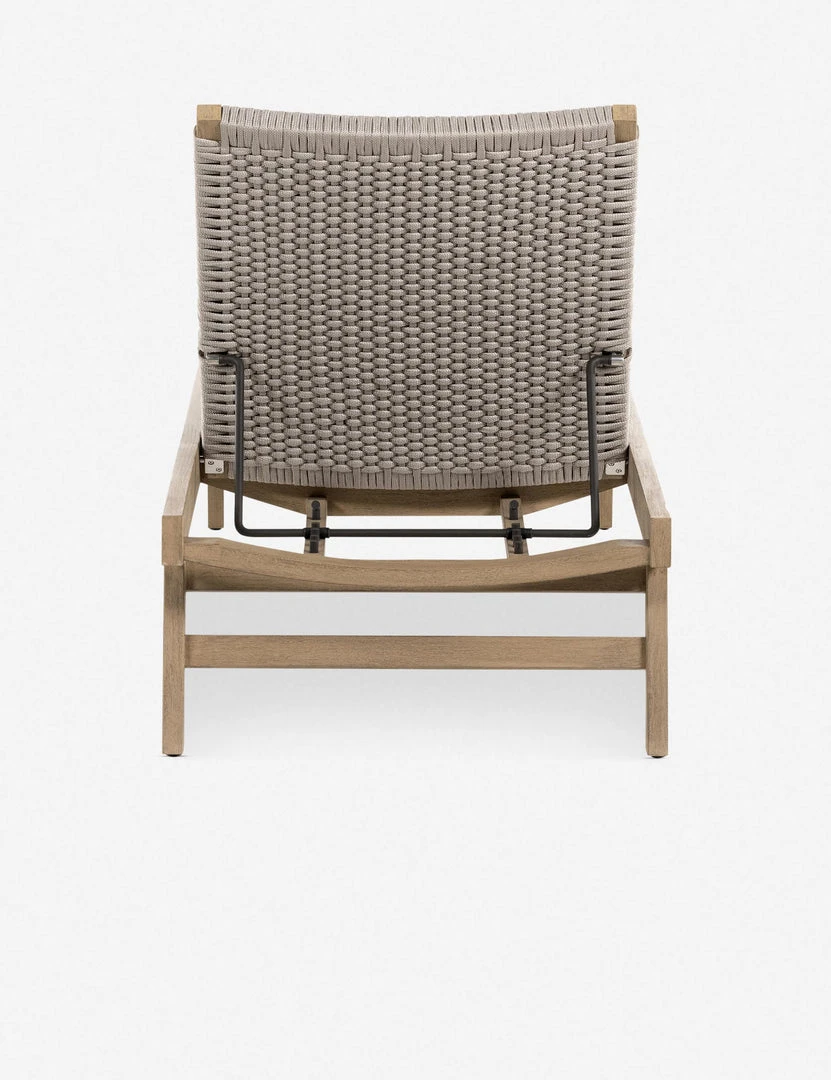 A handwoven rope seat offers easy comfort with textural appeal in this chaise lounge. The teak frame features clean lines and an adjustable back for a transitional style. With its neutral tones and understated design, this chaise can fold into any aesthetic.