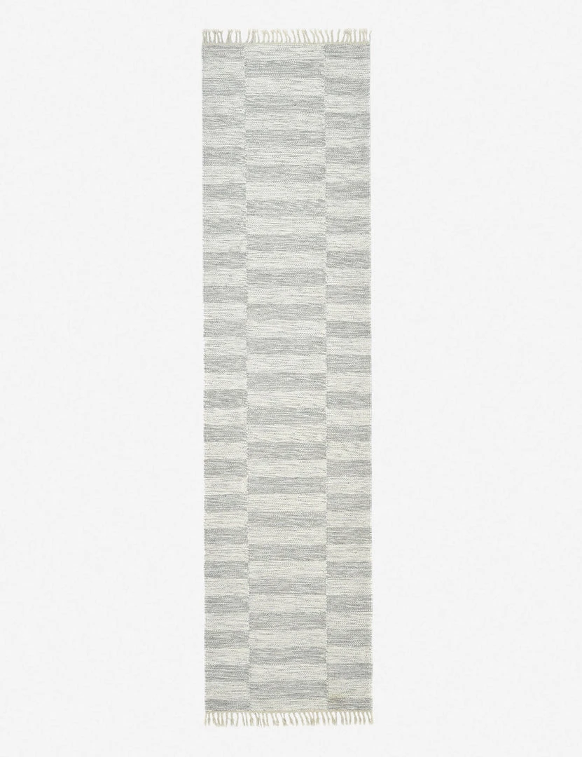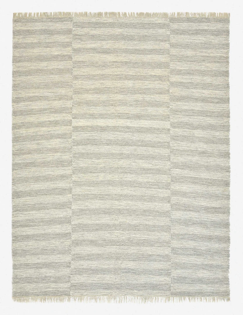 An offset stripe design in a tonal, heathered blue-gray color seamlessly combine to create this flatweave floor rug. Its wool-cotton blend construction makes this area rug durable and low-maintenance—great for high-traffic rooms, entryways, hallways, and in homes with kids and pets.