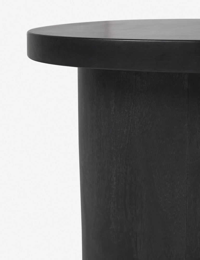 A clean, rounded form contrasts the rugged appeal of this wood side table. The detail-rich grain and minimalist lines come together in a design poised for visual impact. We love this end table for complementing a sculptural sofa or bed in a space layered with texture.