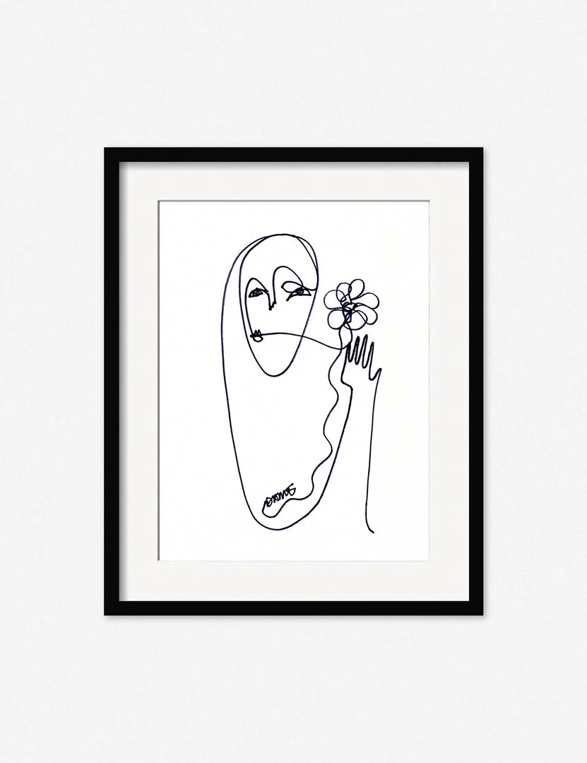 Damienne Merlina brings her versatile fine art experience to the canvas in this abstract wall art print. This line drawing features a subject holding a flower, captured in one single flowing motion. Brighten a sophisticated art wall decor with the sense of balance and poise this print inspires.
